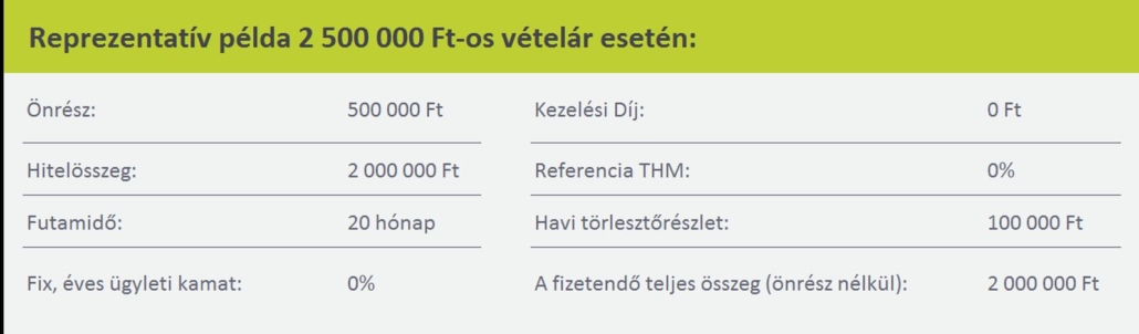 Szükséges önrész, a vételár függvényében: 500 000 Ft-ig önrész nélkül, 500 001 Ft-tól min. a vételár 20%-a.
